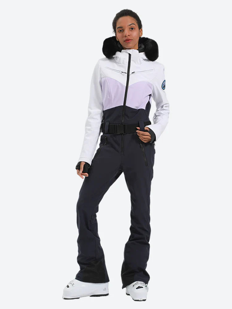 This ski suit offers all-around protection throughout the cold ski season. The waterproof fabric keeps you dry, and the inner layer features premium down for superior warmth. The cinched waist accentuates your figure, enabling you to ski with both comfort and style.